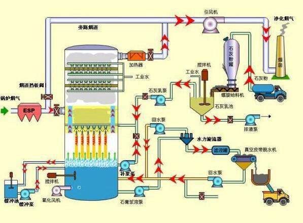 ? ? ? ?為了維持吸收液恒定的pH值在5.5~6.5之間運行,并減少石灰石消耗量,石灰石調(diào)漿濃度一般在15%~20%)被連續(xù)加入吸收塔,同時吸收塔內(nèi)的吸收劑漿液被攪拌機、氧化空氣和吸收塔循環(huán)泵不停地攪動(初運時要加入石膏晶種),以加快石灰石在漿液中的均布和溶解。