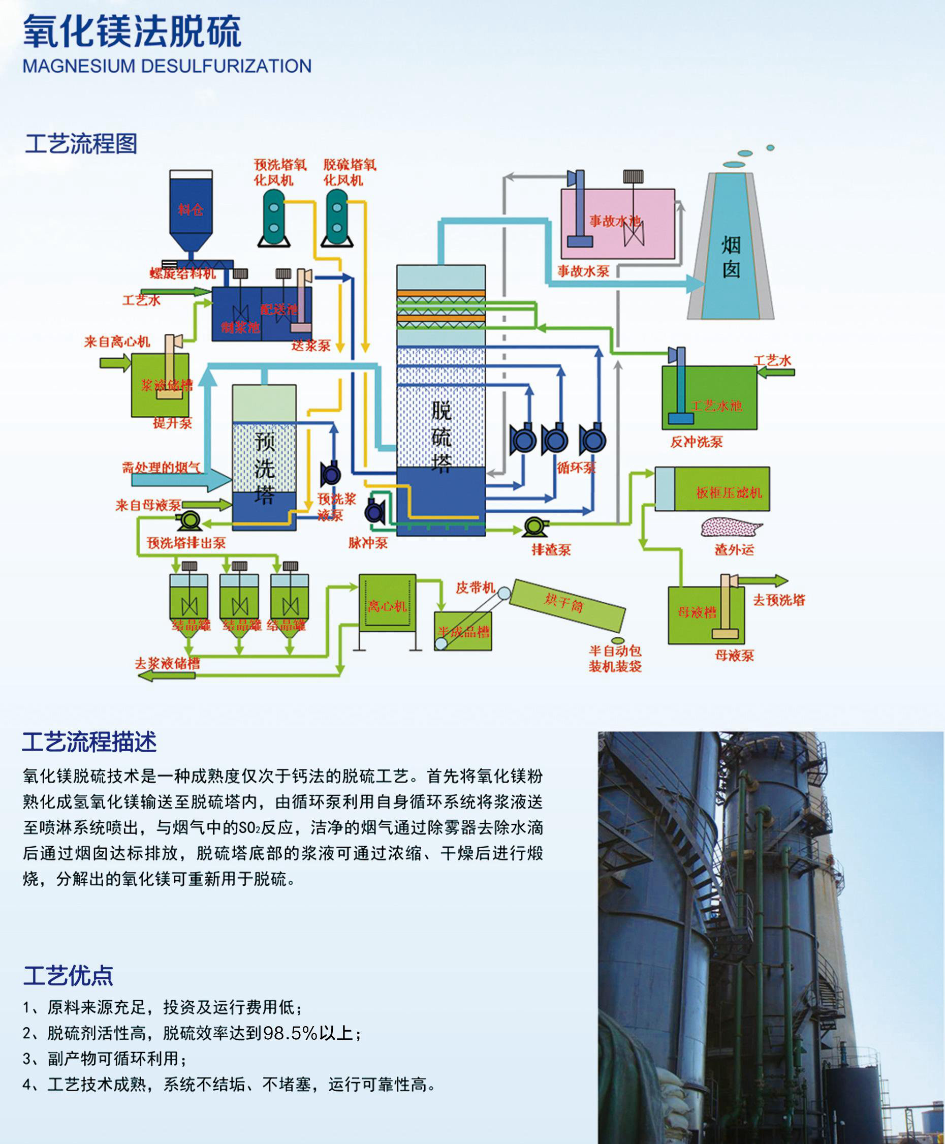 ? ? ? ?氧化鎂法是用氧化鎂的漿液[Mg(OH)2]吸收煙氣中SO2,得到含結(jié)晶水的亞硫酸鎂和硫酸鎂的固體吸收產(chǎn)物,經(jīng)脫水、干燥和煅燒還原后,再生出氧化鎂循環(huán)脫硫。